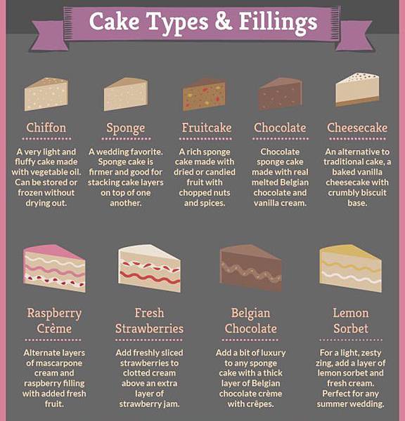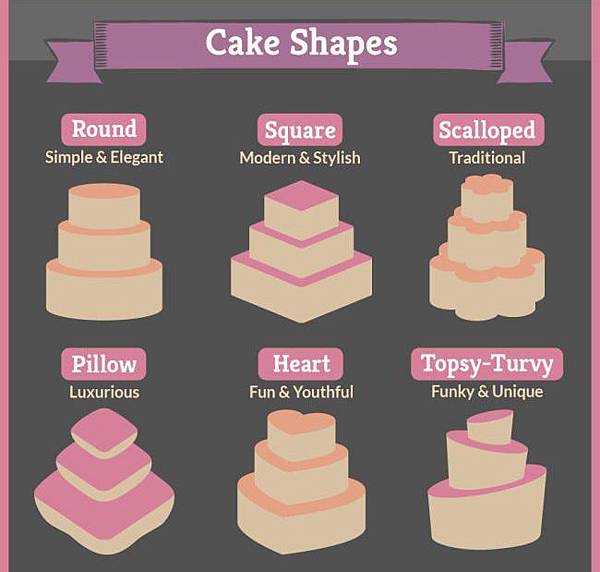 下面這張圖可以簡單的區分所有婚禮蛋糕的款式,